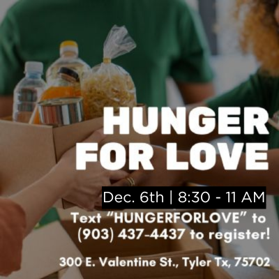 December 6th from 8:30-11 AM as we partner with Hunger For Love Homeless Ministry. We'll help hand out toiletries and clothes, participate in worship, then end by serving a hot breakfast and sack lunch. All are welcome!