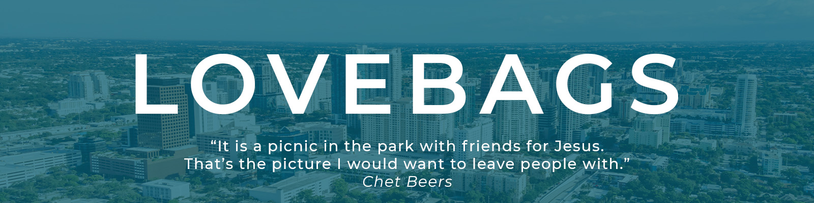 LoveBags is a local ministry founded by Bob Denison and led by Chet Beers that meets Tuesday nights at Holiday Park to love and serve the homeless in a real, tangible way—just as Jesus would. Rio Vista Church partners with LoveBags by organizing a team of servant leaders to cook and serve on the